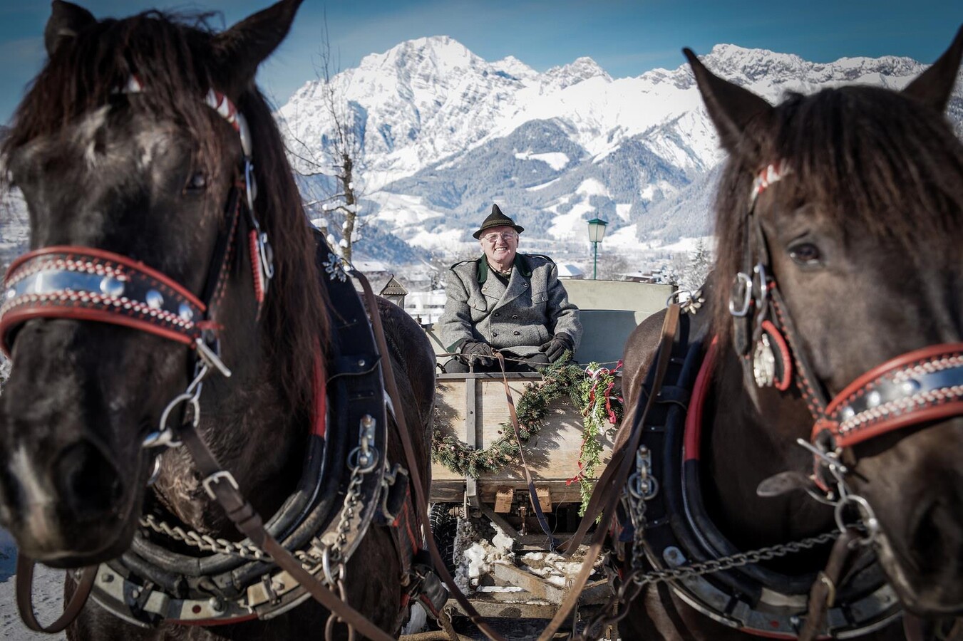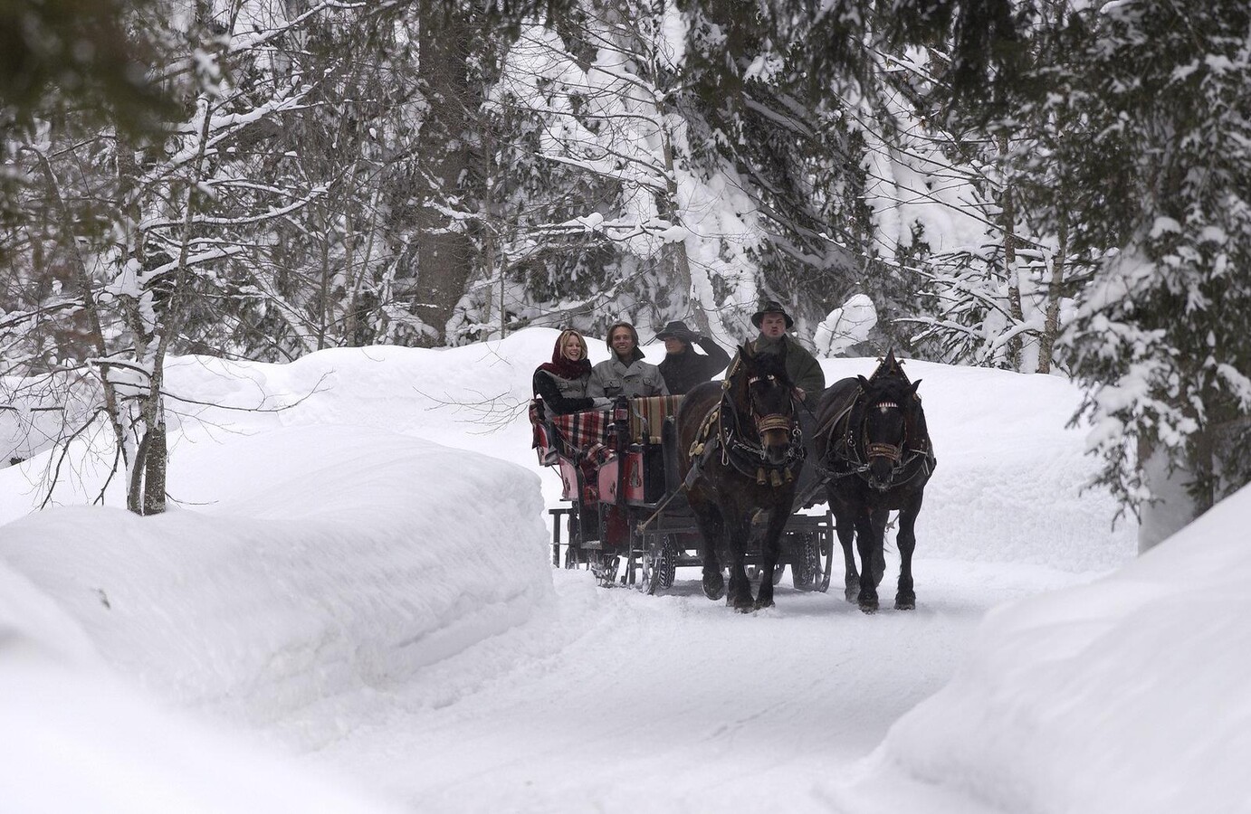 Erleben Sie die das Winterwunderland der Region Saalfelden Leogang bei einer gemütlichen Pferdeschlittenfahrt.