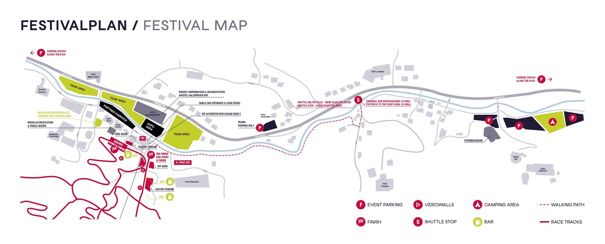 Mit dem Überblick kommt der Durchblick: Damit ihr immer an Ort und Stelle seid, haben wir natürlich auch einen Übersichtsplan für euch! Hier findet ihr Parkmöglichkeiten, Strecken, den bewachten Radparkplatz aber auch unsere Bars auf einen Blick und in nur einer Grafik.