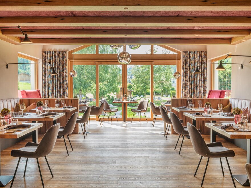 - Traditionsküche im 1617: Benannt nach dem Gründungsjahr des ehemaligen Forstbetriebs, spiegelt dieses Restaurant die alpine Tradition wider. Hier werden herzhafte Klassiker aus der österreichischen Küche in gemütlichem Ambiente serviert.