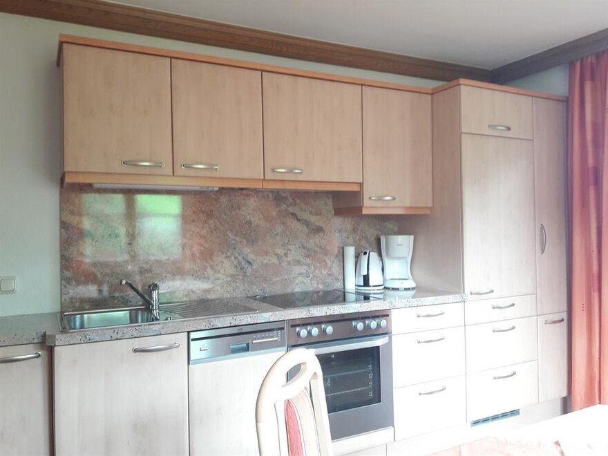 Küchenzeile, Gartenmöbel, Kaffee-Maschine, Geschirrspülbecken, Dunstabzug, Zimmer/Appartement größer als (m²): 1, Küche, Elektroherd, Kühlschrank, Tisch- und Küchenwäsche, Bettwäsche vorhanden, Geschirr vorhanden, Geschirrspülmaschine, Toilettenartikel, Wohn-/Schlafräume getrennt, Fernseher, Balkon, Trockner, Allergikerbettwäsche