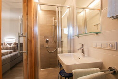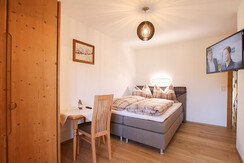 Doppelzimmer Hinterreitblick in SaalfeldenDas gemütlich eingerichtete Doppelzimmer Hinterreitblick in Saalfelden befindet sich im 1. Stock und verfügt über Dusche/WC, TV, gratis W-Lan und Balkon. Es kann bei Bedarf zurFerienwohnung "Hinterreitblick" oder zur Ferienwohnung "Langeckblick" zugebucht werden.
