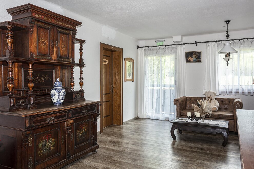 Unser gemütlich rustikaler Frühstücksraum verwandelt sich am Abend zum netten Aufenthaltsraum.