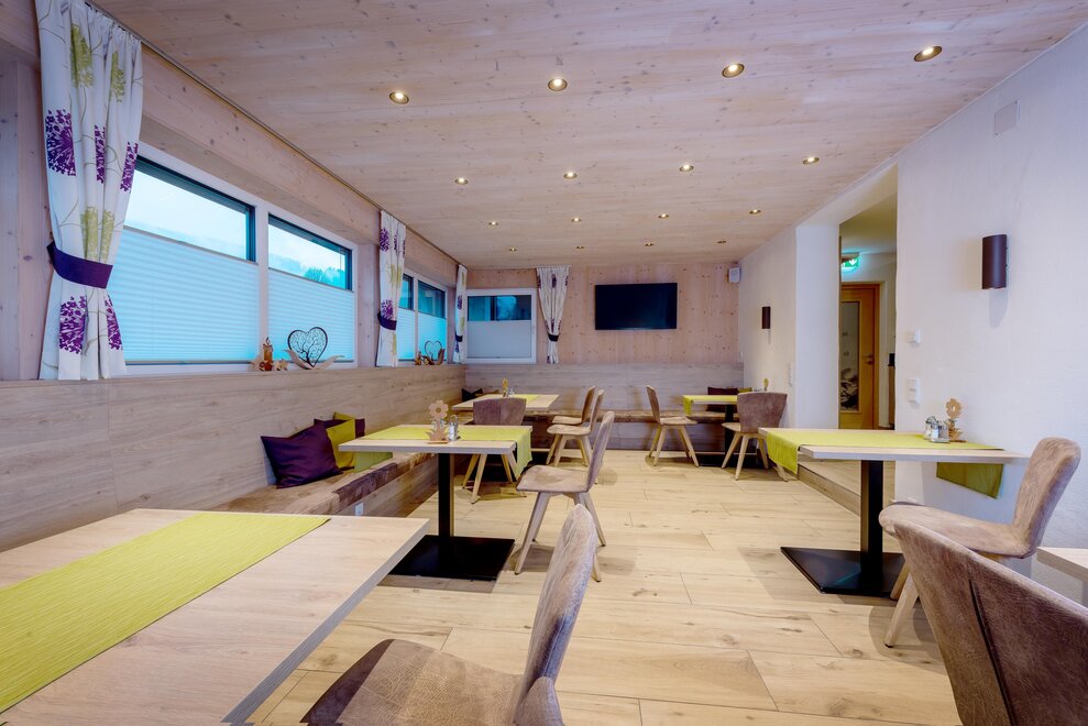 Am Morgen servieren wir Ihnen eine Frühstück mit regionalen Produkten. Der Frühstücksraum dient auch als Aufenthaltsraum und ist mit einer Gästeküche ausgestattet. Gerne können Sie sich am Abend Ihr Essen zubereiten.