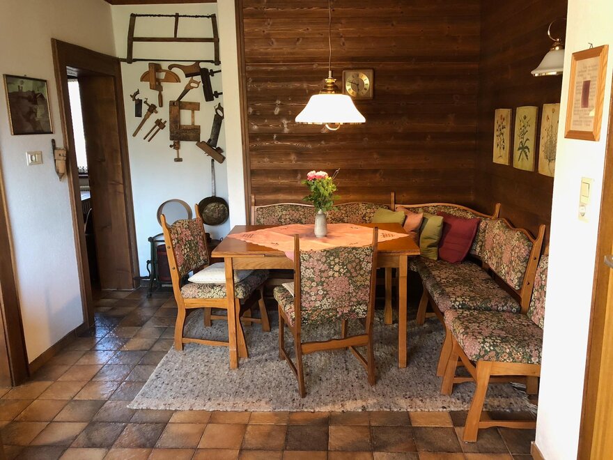 Appartement für 6 Personen mit 3 Schlafzimmer und jeweils Waschgelegenheit, Wohnzimmer mit Kachelofen, Kochnische, Du/ 2WC, WLAN, Balkon, Terrasse und Garten. Größe ca. 85 m2.
