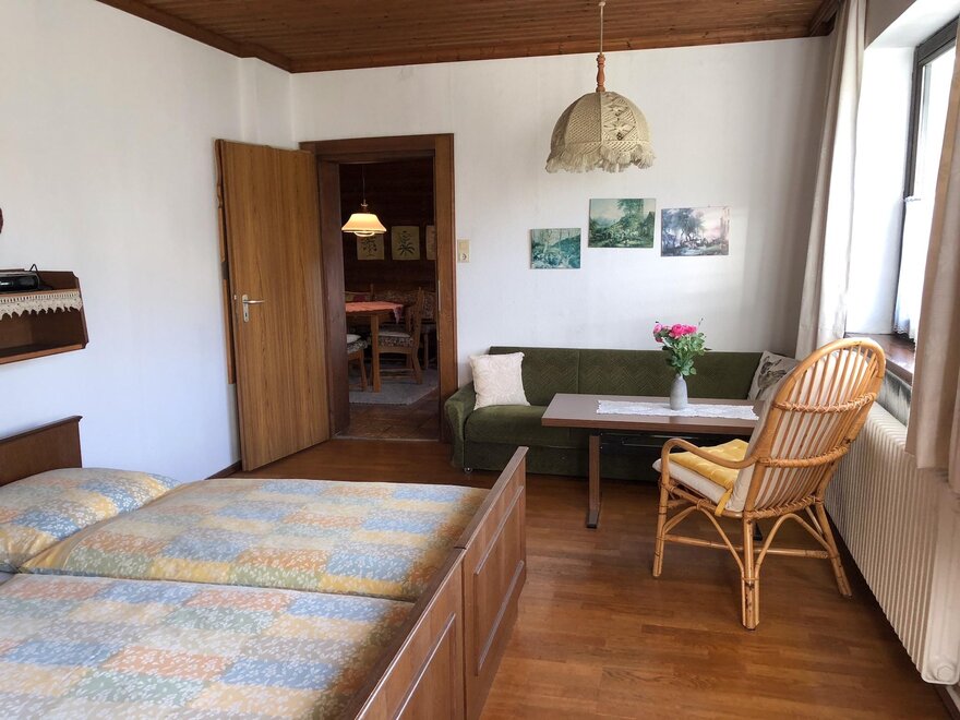 1 Appartement für 4 - 6 Personen mit Wohnküche, 2 Schlafzimmern, 2 DU/WC, WLAN;1 Appartement für 6 Personen mit Wohnzimmer, Kachelofen, Kochnische, 3 Schlafzimmern - jeweils mit Waschgelegenheit, DU/2xWC, WLAN, großer Balkon mit Terrasse, Garten. Gemütliche Wohnungen, ruhige, sonnige Lage, Nähe Zentrum, 2 Zimmer, DU/WC mit Frühstück.
