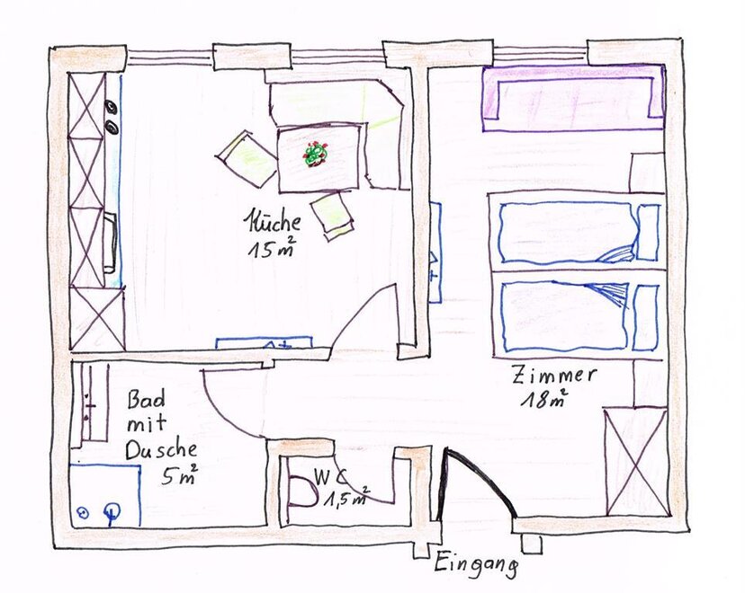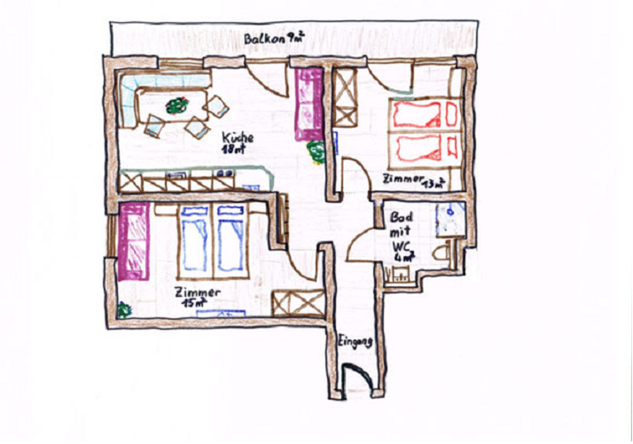 Größe 40 m² Belegung 1 - 3 Erwachsene , 0 - 2 Kinder Zimmer 3 Schlafzimmer 1 Zimmerdetails