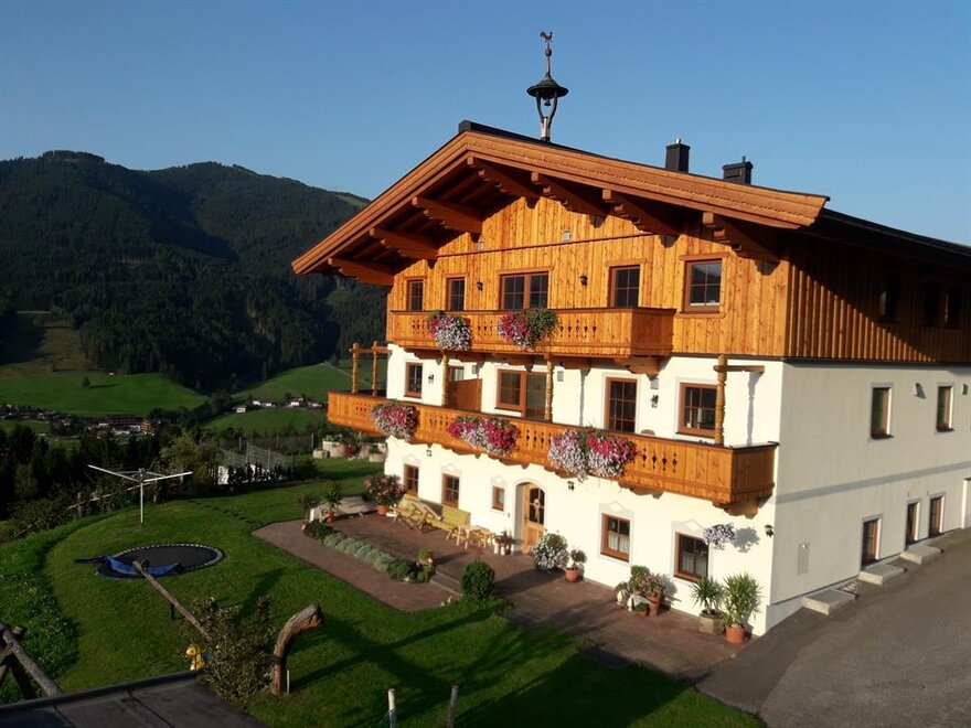 Biologisch bewirtschafteter Hof auf ruhiger sonniger Anhöhe, am Fuße der Leoganger Steinberge. Ausgangspunkt für Wanderungen und Bergtouren, bewirtschaftete Alm mit Kinderspielplatz in der Nähe, Waldnähe, Schikeller und Schischuhtrockner, Grillmöglichkeit, Sat- TV.