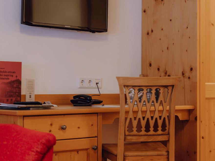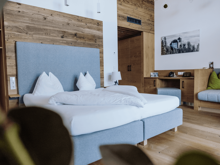 Das Genießerzimmer bietet auf 25 m² Platz für 1 bis 2 Personen und überzeugt mit einem großzügigen Doppelzimmer. Zur Ausstattung gehören TV, WLAN, Safe, Telefon und eine Yogamatte für entspannte Momente.