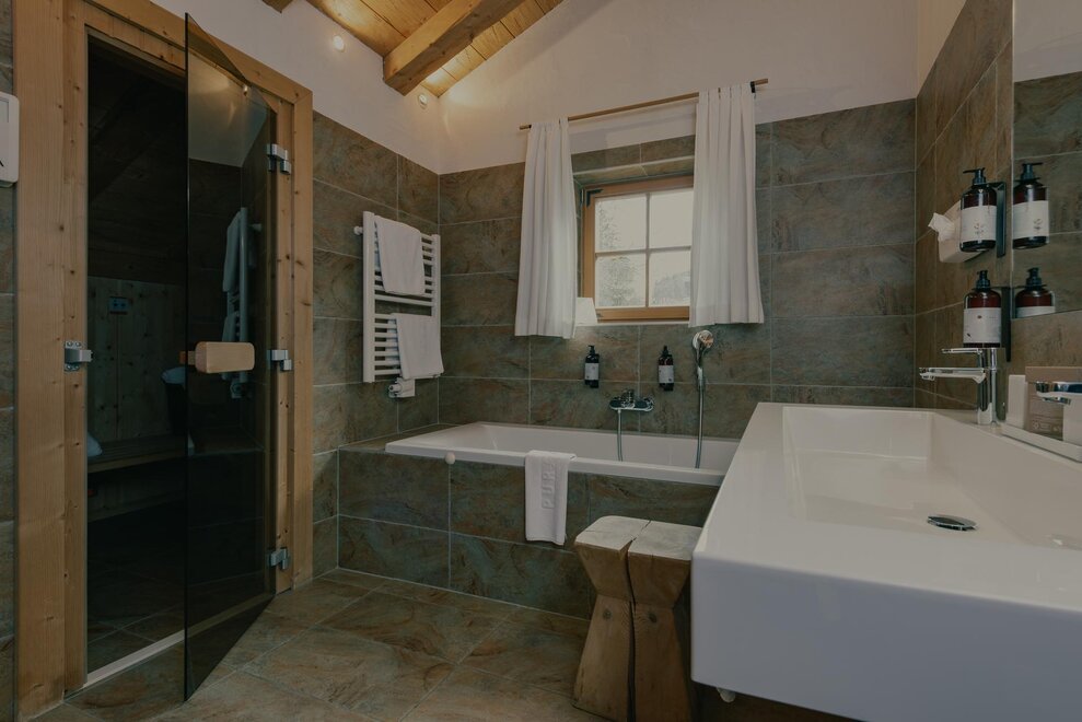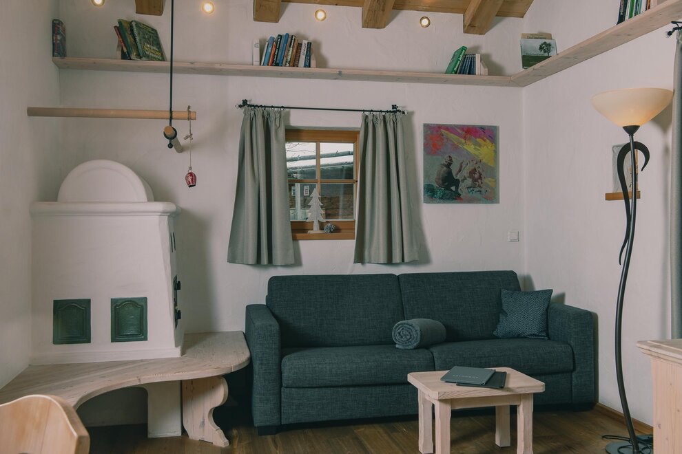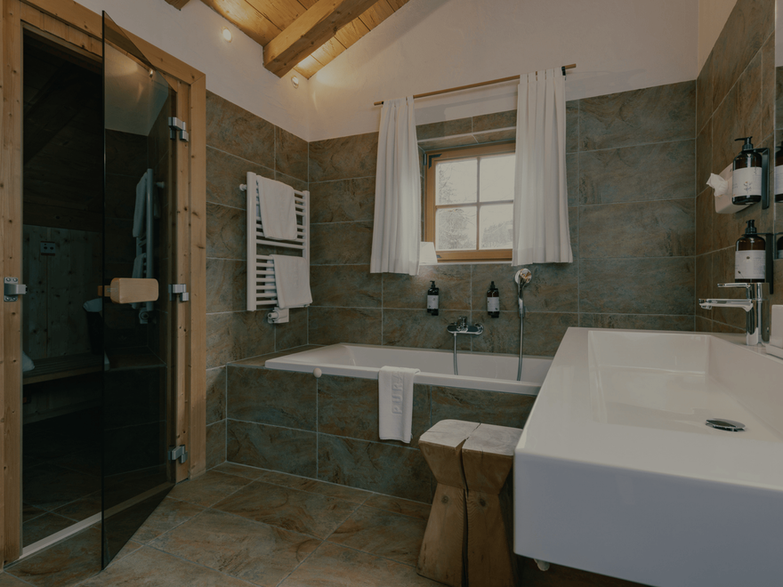 Das Privat Spa Chalet bietet auf 60 m² Platz für 2 bis 4 Personen und verfügt über eine Chaletsauna mit Infrarotstrahlen, eine voll ausgestattete Küche mit Geschirrspüler und Kaffee-/Teebar, einen großen Balkon, Kachelofen, Yogamatte sowie moderne Annehmlichkeiten wie WLAN, Bluetooth-Lautsprecher und Telefon.