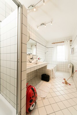 Fließendes Kalt- und Warmwasser, Dusche, Bad, Separates WC, Badewanne, Doppelwaschbecken