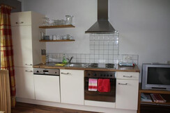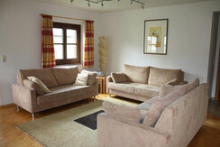 Neues modernes Appartement in Südlage mit Balkon,sehr grosses Wohnzimmer/Küche,Erker mit Esstisch;2 Schlafzimmer für 4-6 Personen(+Schlafcouch) 75m².sauna im Keller.