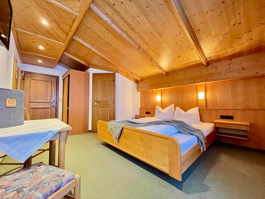 Unsere Doppelzimmer sind mit viel Alpinen Charm durch das Naturmaterial Holz eingerichtet. Alle Zimmer verfügen über eine Dusche, WC, Flat TV und freies WLAN im gesamten Haus.