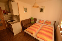 Ferienwohnung BIBERG ( 40m²) Schöne Wohnung für 2 bis 4 Personen, Wohnküche mit großem ausziehbaren Sofa (Schlaffläche 200cm x 160 cm), ein Schlafzimmer für 2 Personen, Bad/Dusche, separate Toilette, Vorraum, in Wohnküche und Schlafzimmer Smart-Flat-TV, Wlan, super Preis/Leistungsverhältnis!