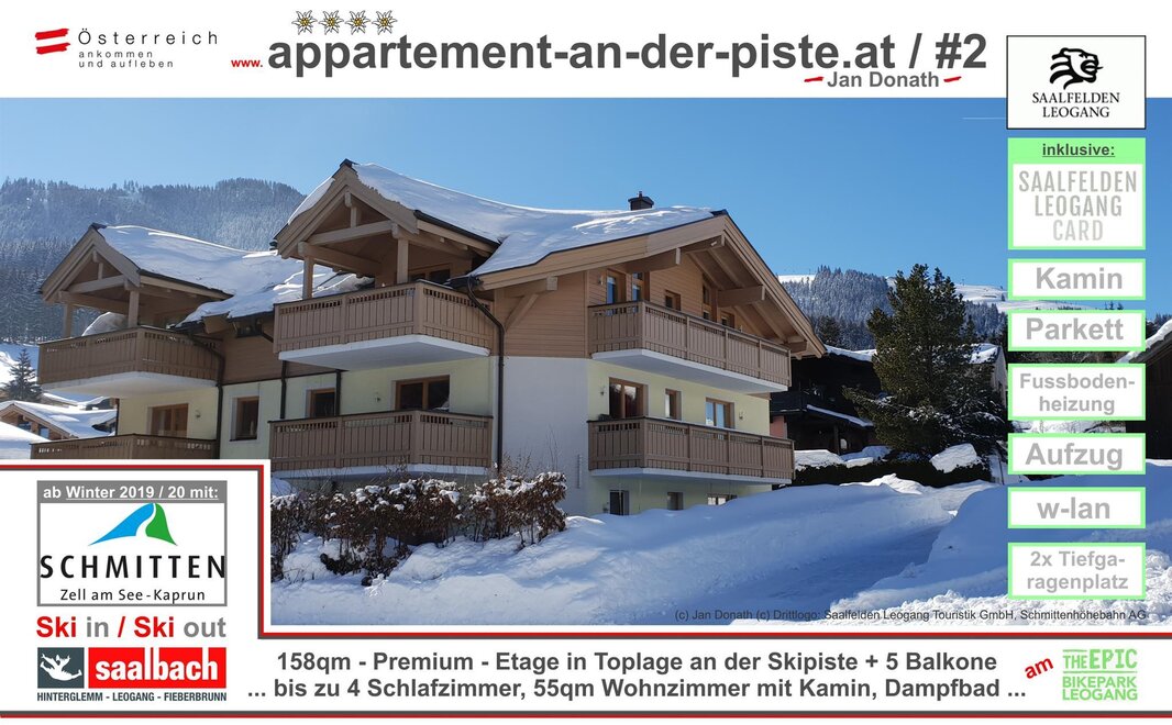 Das familienfreundliche 4 Sterne Edelweiss - Appartement liegt ruhig in wohl einer der begehrtesten Lagen von Leogang, an der Steinberg - Piste. Nach nur 150m Skiweg über eine kleine Wiese, mit Blick auf das 2.634m hohe Birnhorn, erreichen Sie an der Kralleralm einen idealen Anfängerhang mit Übungslift & Skischule. Von dort gelangen Sie mit wenigen Schwüngen an die 2014 eröffnete 10er - Steinbergbahn, mit der Sie rasch und angenehm auf die großartigen Pisten von Zell am See (neu ab Winter 2019/20) und Saalbach - Hinterglemm - Leogang - Fieberbrunn schweben. Auch der BIKEPARK LEOGANG hat sich mit einem weiteren Lift und neuen Trails vergrößert und befindet sich nun nah am Quartier. 9 Golfplätze gibt es außerdem im Umkreis von 50km. Vielfältigste Möglichkeiten in Leogang und der näheren Umgebung dürften selbst in einem mehrwöchigem Sommerurlaub keine lange Weile für Jung & Alt aufkommen lassen.