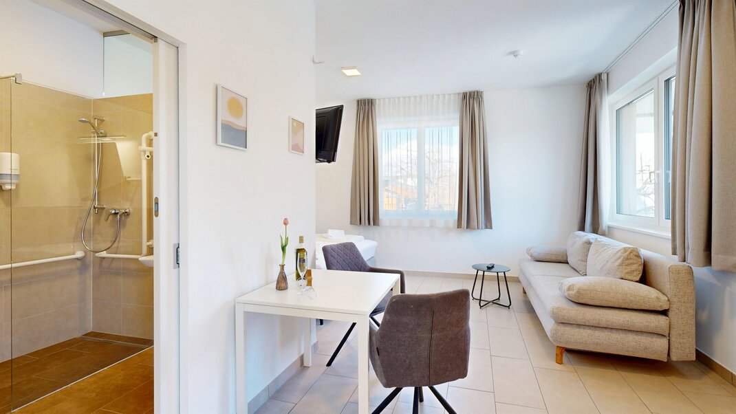 Größe 19 m² Belegung 1 - 2 Erwachsene , 0 - 1 Kinder Zimmer 1 Schlafzimmer 1 Zimmerdetails