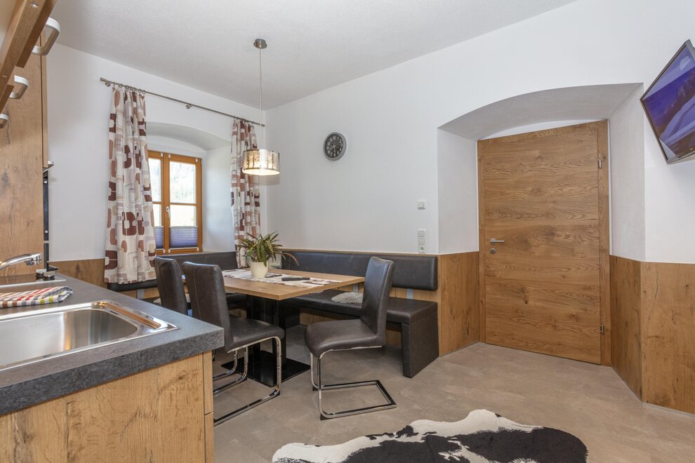 "Gemütliches Appartement"Das Appartement Enzian verfügt über ein separates Schlafzimmer, einen großen Wohnraum mit gut ausgestatteter Küche, ein Badezimmer und ein WC. Das Schlafzimmer ist mit einem Doppelbett und einem Einzelbett ausgestattet. In der großen Wohnküche befinden sich ausziehbare Sofas.