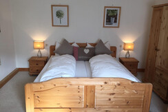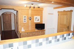Apartment B: Dieses Appartment ist auf 2 Etagen aufgeteilt. Im Erdgeschoß befindet sich die Küche mit eingebauten Kühlschrank, Geschirrspülmaschine und einem doppelten Abspülbecken. Das Wohnzimmer ist mit einem Sofa in L Form ausgestattet, einem Fernseher und einem DVD Player ausgestattet. Der Esstisch bietet Platz für 6 bis 8 Personen. Das Badezimmer besteht aus einer Badewanne, einer Dusche, Waschbecken und WC. Die Treppe führt in the 1. Stock zu den Schlafzimmern: 1 kleines Doppelzmmer & 1 Schlafzimmer mit Stockbett und Einzelbett, beide Schlafzimmer haben einen Kleiderschrank und eine Kommode. Zusätzlich gibt es noch ein Badezimmer im ersten Stock mit Dusch und WC.