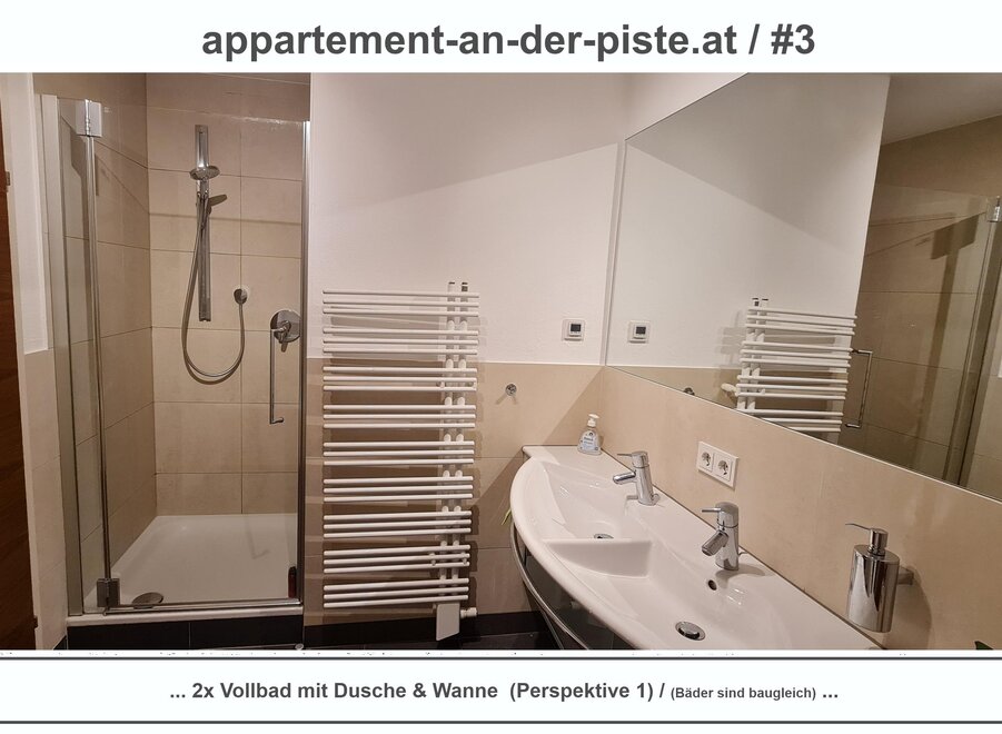 The nearly new apartment is very attractively equipped in terms of the two bathrooms (each with bathtub and shower), fitted kitchen, and flooring (oak parquet in the rooms).