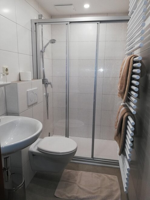 Einen besonderen Flair vermittelt unser gemütliches, großzügig ausgestattetes Appartement (ca. 65m²) mit Vorraum, Wohnküche mit Kochnische, Geschirrspüler, Backofen, E-Herd, Kühlschrank mit Gefriermöglichkeit, Kaffeemaschine, Wasserkocher, Toaster, Geschirr, Eckbank und Sitzgruppe, 2 sep. Schlafzimmern (Mehrbettzimmer), Dusche, zwei Waschtischen und 2 mal WC, südseitigem Balkon, Kabel-TV und freies W-LAN.