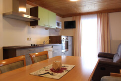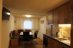 Size: approx. 65m²The spacious holiday apartment on the 2nd floor features a fully equipped kitchen-living area, two separate bedrooms that accommodate four people, as well as two bathrooms and a separate toilet. The balcony on the second floor offers a beautiful view of our picturesque alpine village and the surrounding mountain scenery. Additionally, our guests have access to a ski room, a ski boot dryer, and a locked storage area for bikes and other sports equipment. Upon request, we can also provide baby equipment (crib and high chair). Room/apartment featurescentral heating, electric stove, vent hood, rustic furniture, kitchen utensils, separate bedroom/s: 0, dishes available, cable TV, fax connection, highchair, open plan kitchen/living room, separate living room, foldaway bed, kitchen and table linen, toaster, family room/apt., microwave, radio, dish sink, hairdryer, closet, heater, island kitchen, refrigerators available, freezer compartment, towels available, garden, open foot-end of bed, balcony, garden furniture, no carpet, separate bedroom/living room, kettle, combination microwave, meadow, furniture suite, dishwasher, bed linen available, TV, pets permitted on request, coffeemaker, kitchen, WiFi, refrigerator, anteroom, cooking possibilities Bathroom facilitiesbathtub, separate toilet, shower Bed distributionsofa, double bed (1 bed/2 mattresses), single bed, bunk bed, cot AvailableAvailable, No arrivalOnly departureNot available