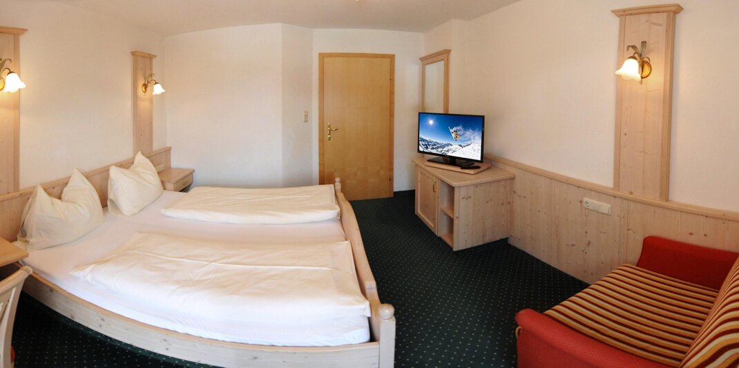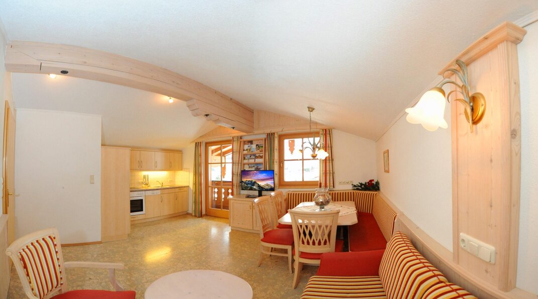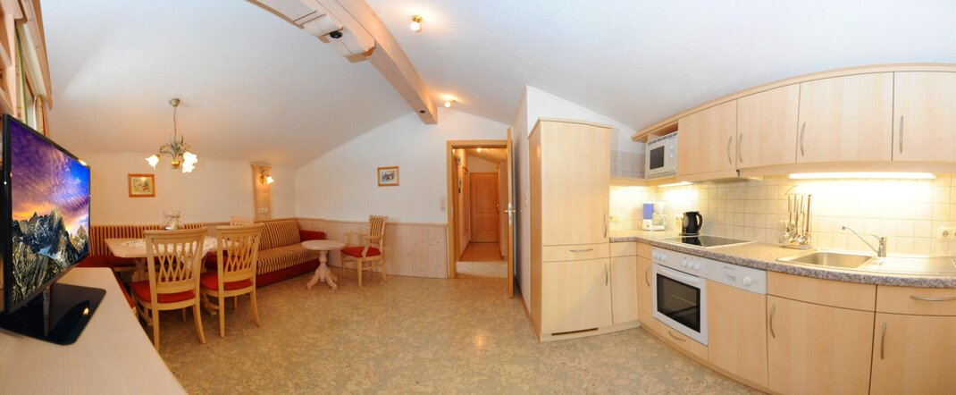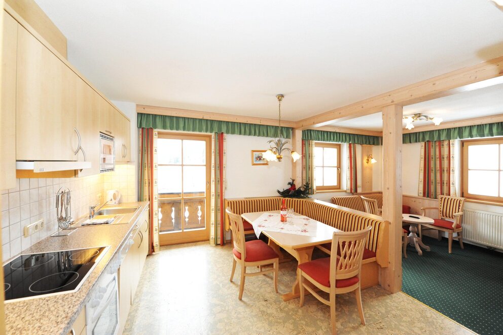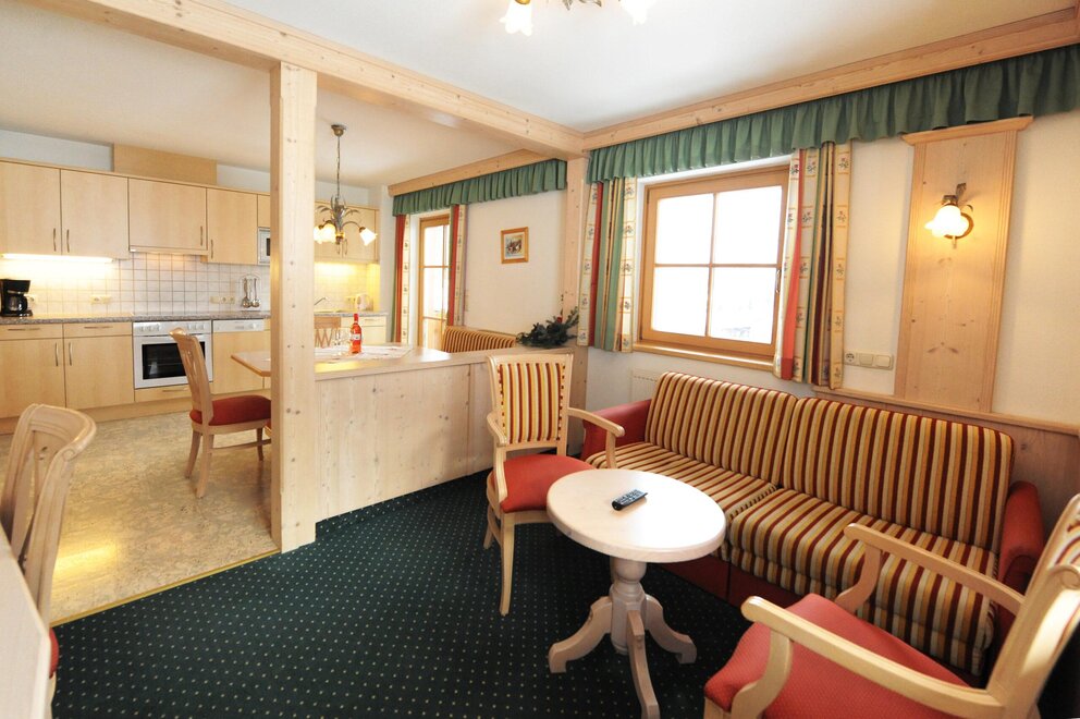 This comfortable apartment for 2-4 people consists of a double bedroom and a living kitchen. In the living kitchen, you will also find a comfortable sofa bed that is 180 cm wide. If available, you can also book room 3 in addition, accommodating 3-7 people. Room 3 has another comfortable sofa bed for one person. The sofa beds are equipped with an extra mattress for maximum comfort. Both the Asitz apartment and room 3 have TV and Wi-Fi.