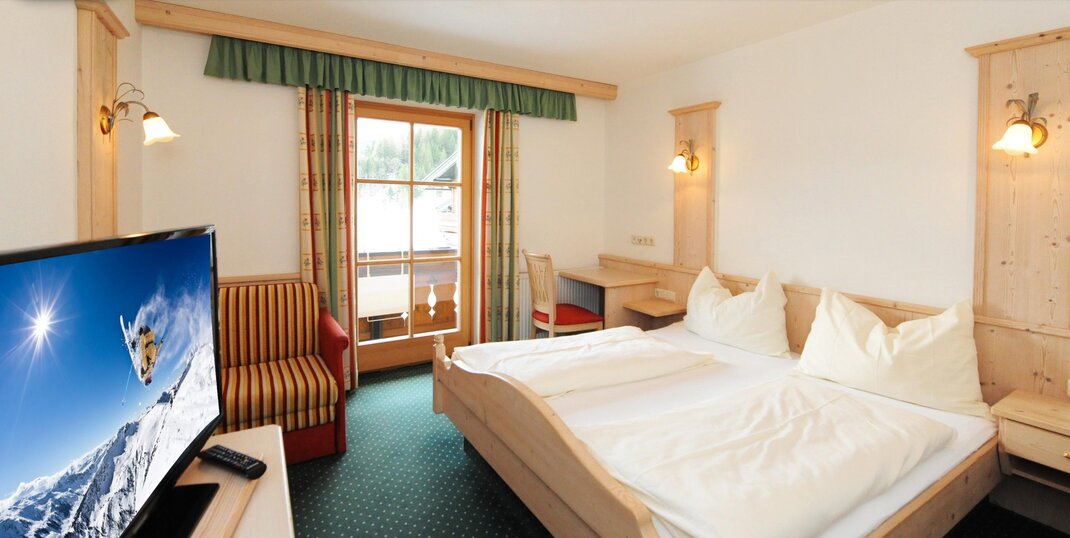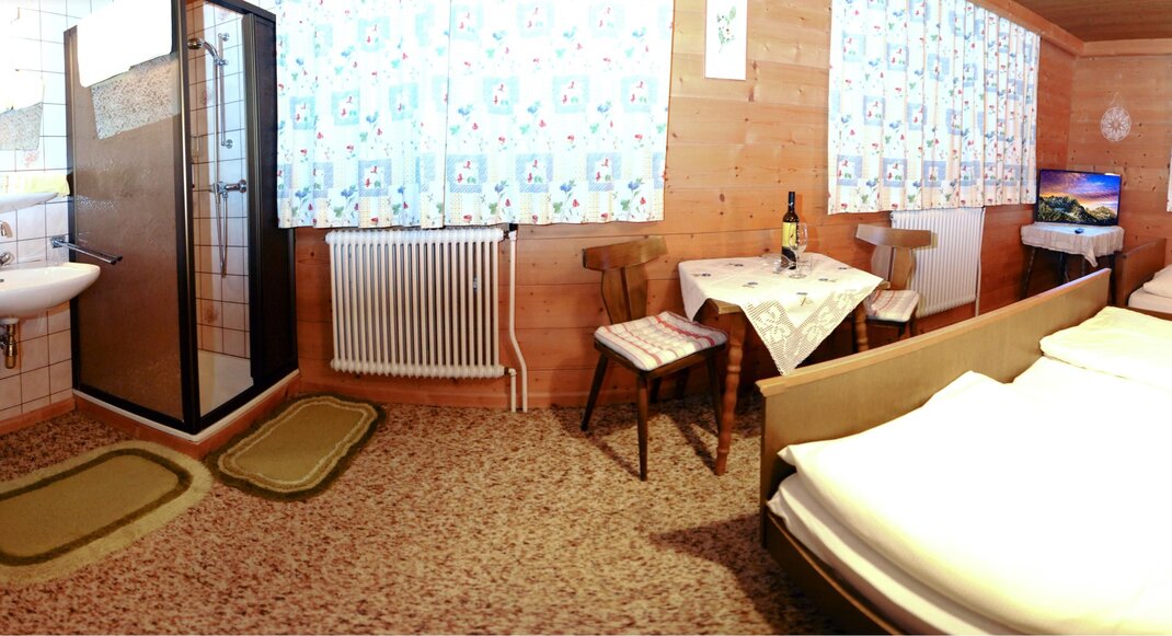This comfortable apartment for 2-5 people consists of a double room and a living kitchen. You will also find in the living kitchen a comfortable pull-out couch with a width of 180 cm and a simple pull-out couch in the bedroom. Additionally, depending on availability, Room 4 can be booked in addition to the Birnhorn apartment. This consists of another double room, a bathroom, and a separate toilet. The double room has another comfortable sleep couch for two people. All pull-out couches are equipped with an extra comfort mattress to provide you with a restful and relaxing sleep.
