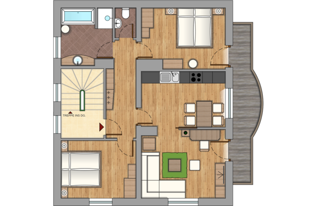 Familien-Ferienwohnung mit 65m², zwei voneinander getrennte Schlafzimmer, großes Bad mit Badewanne, separates WC, komplett ausgestattete Küche mit vielen besonderen Kleinigkeiten, schönes Wohnzimmer mit 4K UHD-TV, DVD, W-Lan, Balkon. Die Räume sind alle harmonisiert und herrlicher Zirbenduft empfängt Sie!