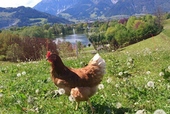 40m², Wonderfull view to the lake and mountains. Fully equipped combinated kitchen/living room, couch - bunk bed comination, TV, radio, bedroom, shower/WC, balcony. You can use our nice garden for sun bathes. We offer a farm tavern with a snug terrace, where you can enjoy a breakfast, coffee, a drink or self made organic dishes. Your kids will love the playground and the farm animanls: cows, horses, ponies, chicken, cats and dog. Cross counrty trak, ski regions, hiking trails, golf courts, and many more activities are located nearby.