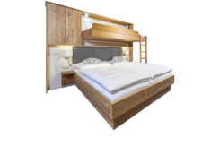 The new rooms are situated at the first floor of the farmhouse. In the basement we offer a drying room for your ski gear. Both are easy to reach via elevator. All rooms are warmly furnished and include fresh bed linen and towels, TV, hairdryer, and internet WLAN. Room für up to 3 persons with a double bed and extra bed funktion*, one bathroom with shower and a balcony. *Flexinno-System (see photos)