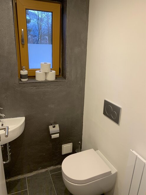 Our holiday home (110 m2) is very comfortably furnished and has a large living room, a fully equipped dining kitchen with dishwasher and various kitchen appliances, bedrooms with new beds, a beautiful large garden, next to a stream. The house has a bathroom with shower, bathtub and double sink, a second bathroom with shower and sink, and two separate toilets.