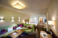 Our 35 m² junior suites Bergklee comfortably accommodate 2 people. The suites are equiped with a cosy living area as well as a balcony facing the surrounding mountains.