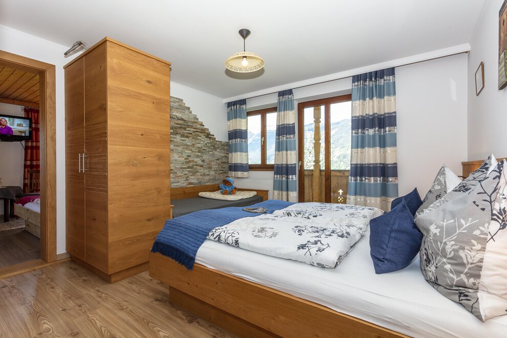 2-5 persons (60 sqm): 1 double room, large living room with couch, seperate, flanking double room with extra shower/WC and balcony. Completely appointed kitchen living with fridge, microwave, coffee machine, water boiler; shower/WC, balcony, cable TV, radio and is located on the first floor of the house. Fantastic view to the Saalfelden's home mountain called "Biberg".