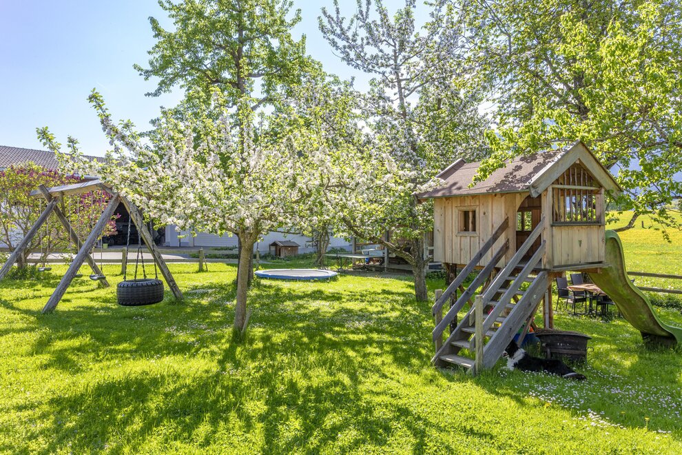 Our family friendliness is evident in many thoughtful details: Whether with a crib, high chair or a children's playground, our young guests are warmly welcomed! While you enjoy nature, the children can happily dig in the sandy pit or swing on the child's swing. Let your soul unwind on our sunbathing lawn or while grilling with farm-produced products outdoors.