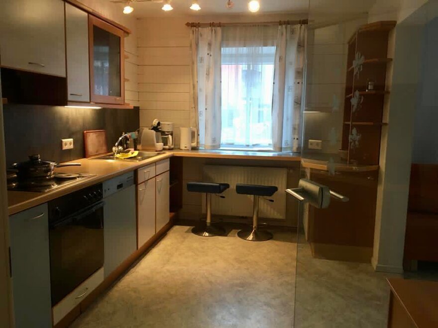 64 m² + 2 parking space apartment with anteroom, kitchen, bedsitter, bedroom, toilet, bath with bath tube, table wear, toaster, coffee machine, dish washer, electric kettle, cable TV, bed linen, etc.