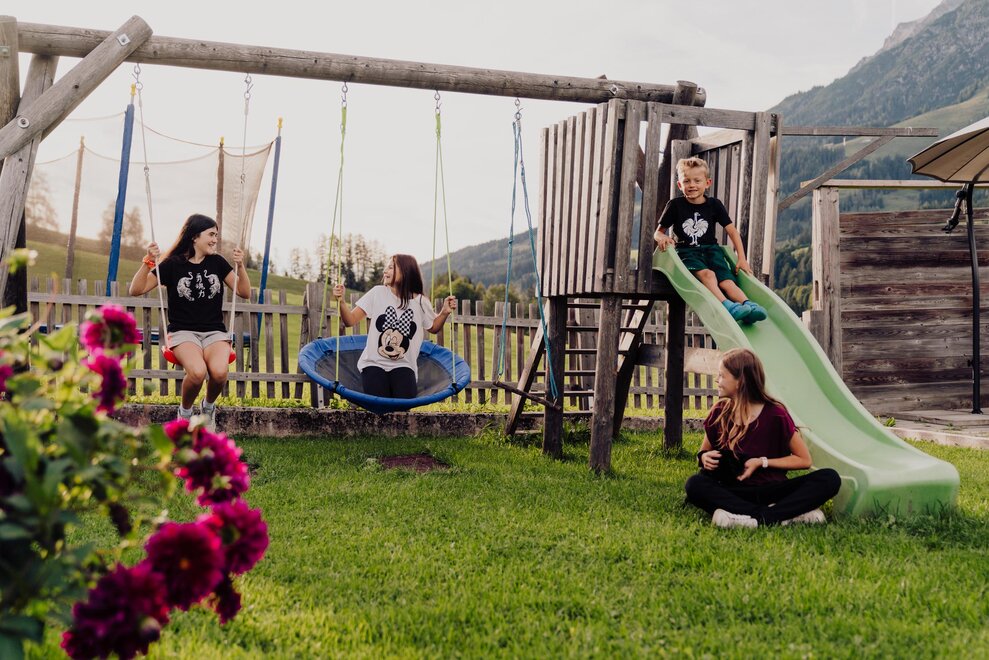 A small road brings you up to us, into the relaxed farm life and, incidentally, away from the daily grind. We live here with our family, many farm animals, and "five smart friends." That's what we call our apartments because they weren't created on a whim, but from the heart. We tinkered, built ourselves, and custom-made carpentry to create high-quality, modern retreats for self-catering. If the "home of casual" beckons, you're just a few minutes' walk from the center of Leogang, with its restaurants and shops, hiking trails and bike trails, ski slopes, and cross-country ski runs. At home at the "farm of casual" – visit us at the Obergrundhof.