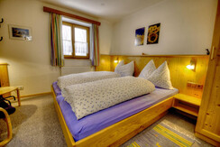 This apartment (No 2) is a two-bedroom with about 60 sqm and was refurbished in 2004. Each bedroom has a double-bed, the sofa in the living room can also be used for sleeping, therefore offering space for up to five persons. From the vestibule you have access to the eat-in-kitchen and the first bedroom (sunflower room). The bathroom is also accessible from the vestibule.
