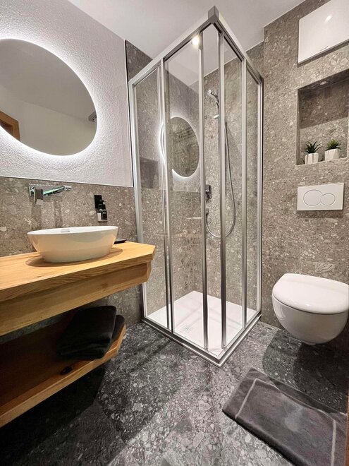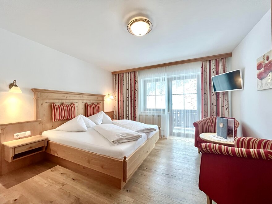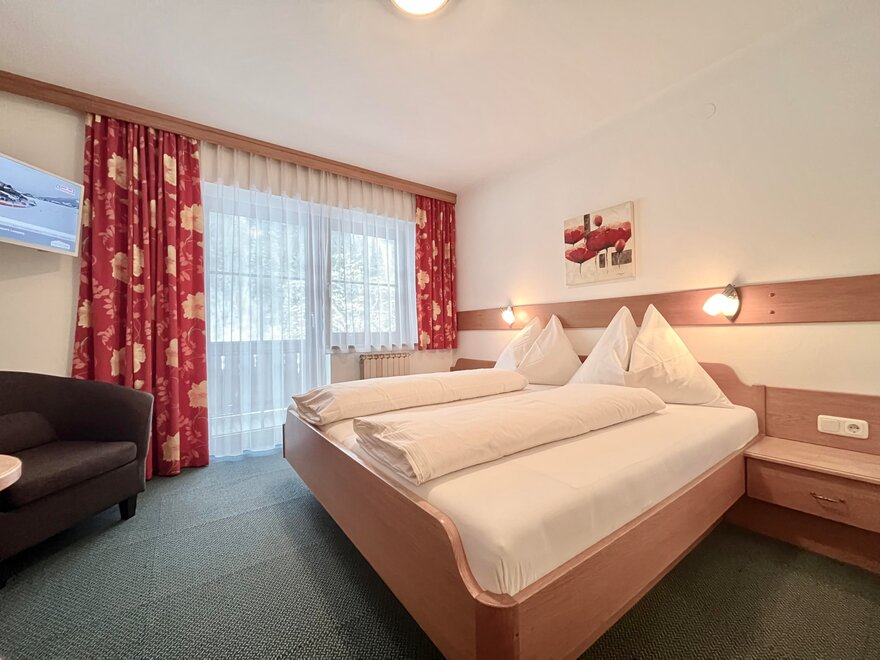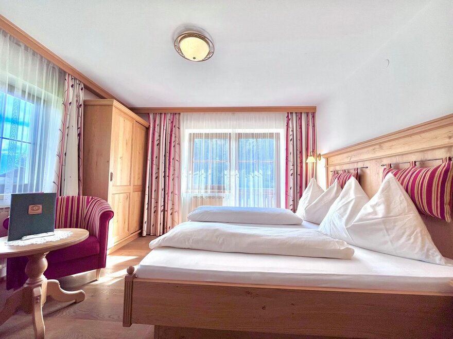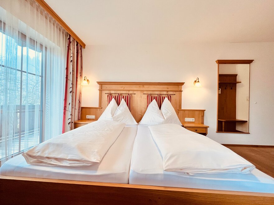 Our double rooms are furnished with alpine charm by the natural material wood. All rooms have a shower, toilet, flat TV and free Wi-Fi throughout the house.