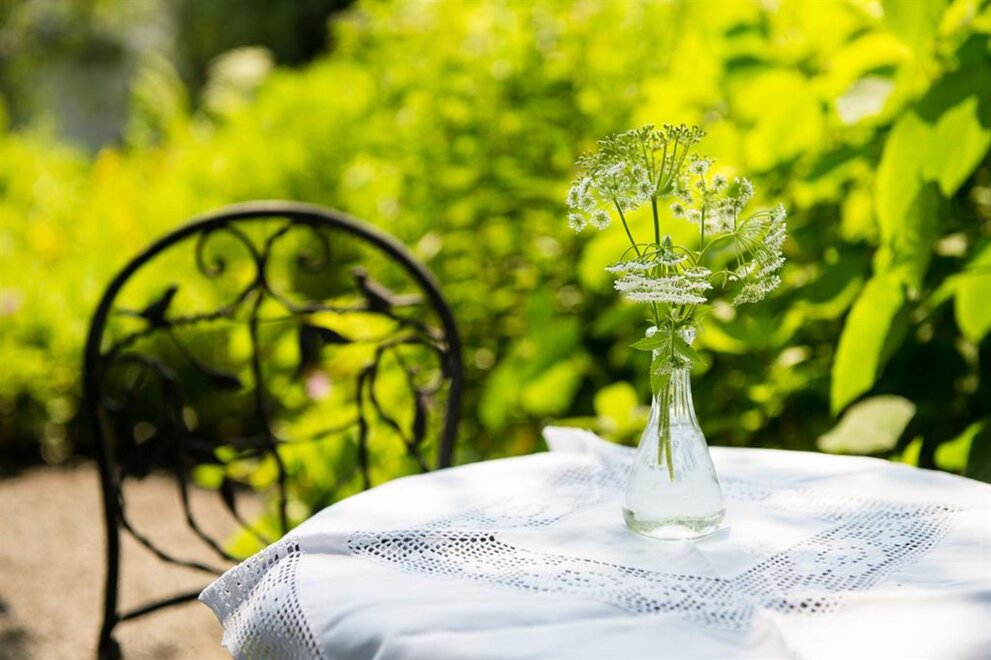 Enjoy the atmosphere of a summer evening and delicious culinary delights in the romantic garden situated nextdoor to the little chapel.