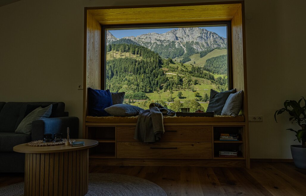 The small, sheltered rooftop terrace invites you to breathe deeply – with direct views of the Fuchskopf peak and the surrounding mountains. A place of peace you won’t soon forget.
