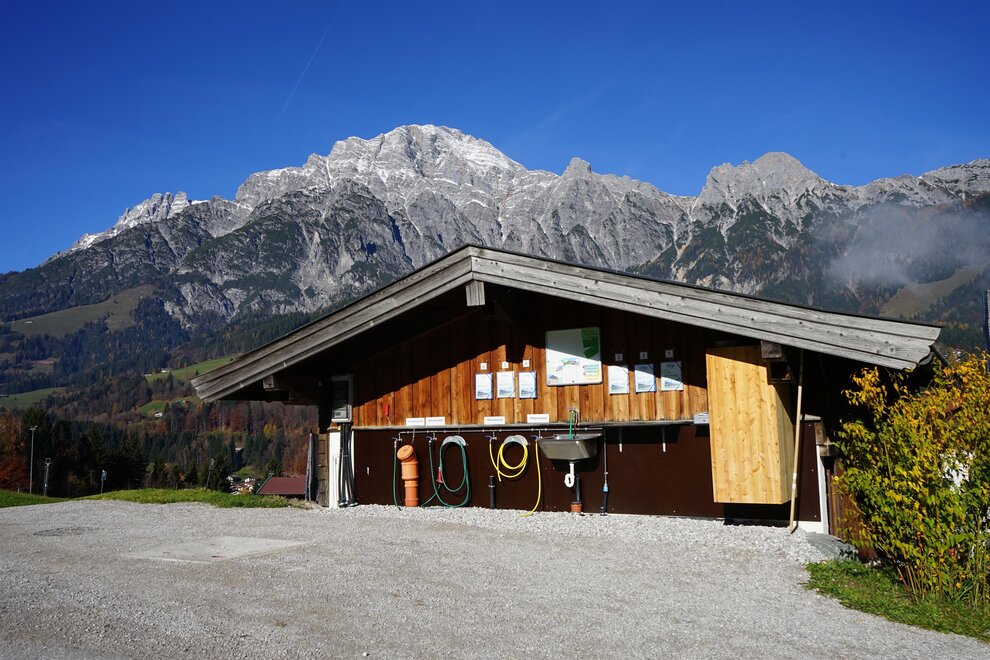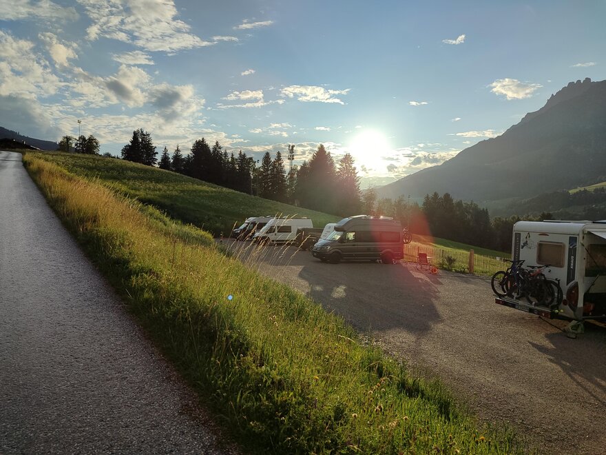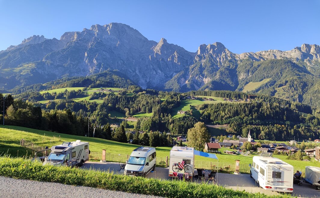 Welcome to the Bichlhof in Leogang. Our small but nice motorhome parking space is open all year round. Away from the tourist hotspots of Leogang, our breathtaking view of the Steinberge invites you to relax and unwind. The center of Leogang is only a few minutes' walk away. The nearest grocery store is 1.2 km away and the swimming pool is a 15-minute walk away. Numerous hikes start directly from the farm, and the nearest bus stop is only 5 minutes away. In winter our campsite is located directly at the Schteil lift. Our pitches are equipped with electricity, fresh water and WiFi. We also have a disposal station for gray and black water.