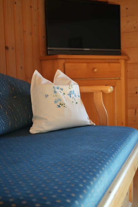 Light-flooded rooms, bright wood, and fine linen create a cozy atmosphere in our apartment with an entrance area, a living kitchen with a kitchenette, fridge, small oven, electric stove, kettle, coffee machine, toaster, dishes, corner bench and seating area, 1 separate bedroom (multi-bed room), shower/bathtub, separate toilet, south-facing balcony with mountain view and seating, cable TV, free Wi-Fi and an additional double room with shower/toilet, cable TV, and free Wi-Fi!