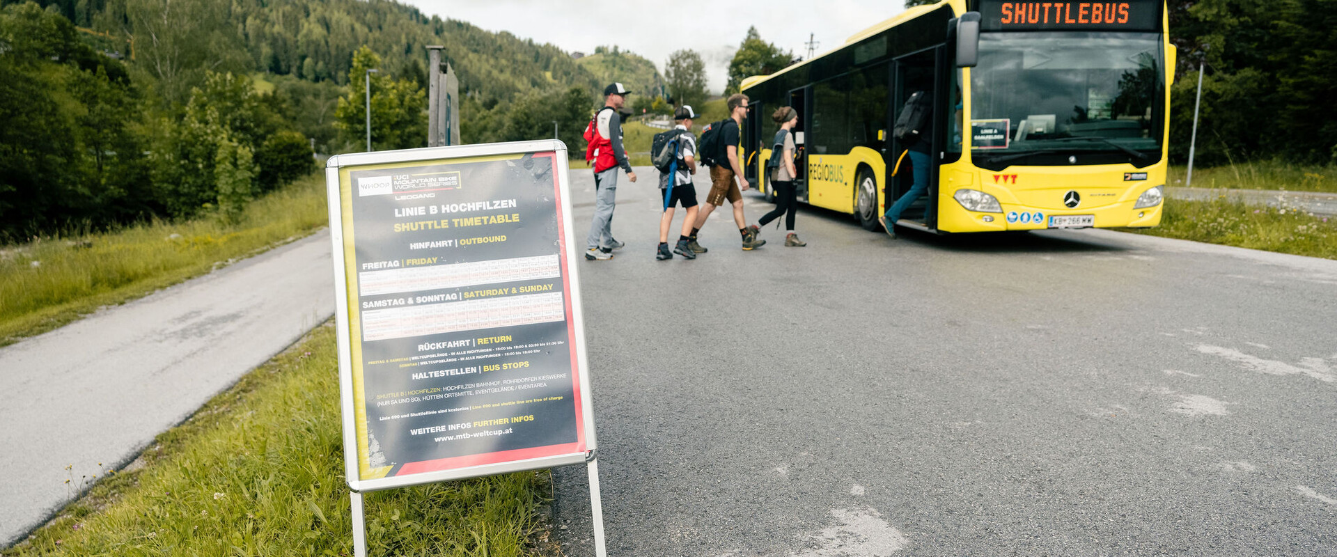 Regardless of whether you have travelled by train or parked in one of the large car parks. From Friday to Sunday there is a free shuttle service (every 30 minutes) that will take you directly to the event site. Line A starts in Saalfelden, line B in Hochfilzen.